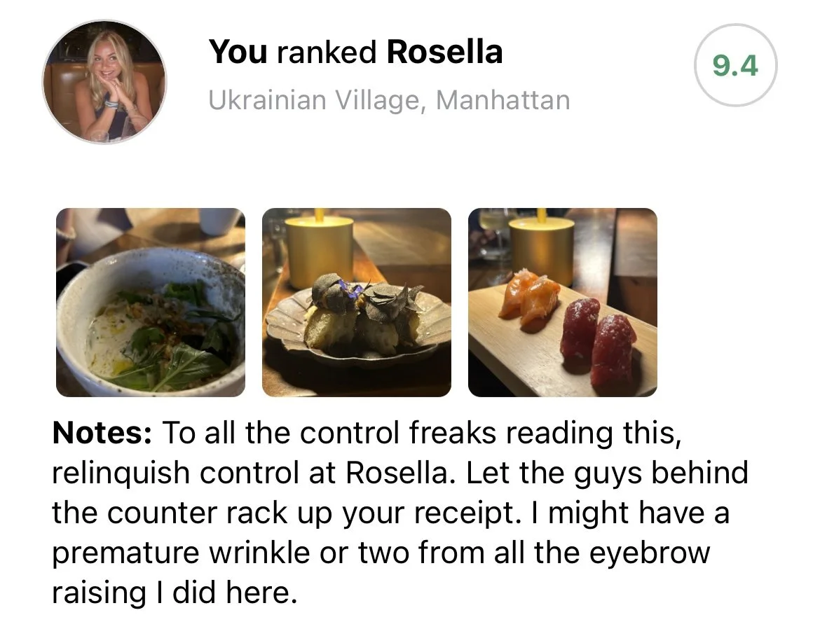 Charged with honesty, feast your eyes on my NYC Beli ratings. From one restaurant-obsessed writer, to a hopefully restaurant-obsessed reader, take these words as you will.